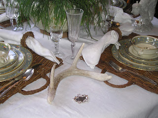The Lenox looks exceptional with the rustic placemats...and then the elegant white and green arrangement with the antler..I like that a lot too...